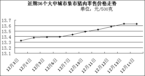 中新網(wǎng)12月18日電 國家發(fā)改委網(wǎng)站消息稱,據(jù)國家發(fā)展改革委價格監(jiān)測中心監(jiān)測,上周(12.10-12.14,下同)全國36個大中城市集市豬肉(精瘦肉)平均零售價格每500克為13.57元,比前一周(12.3-12.7,下同)上漲1.34%。