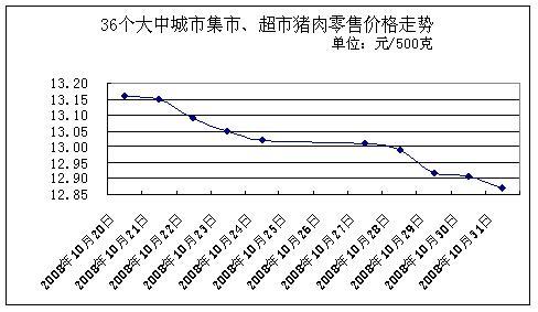 中新網(wǎng)11月3日電 據(jù)國(guó)家發(fā)改委網(wǎng)站消息,國(guó)家發(fā)改委價(jià)格監(jiān)測(cè)中心監(jiān)測(cè)顯示,上周(2008.10.27-2008.10.31,下同)全國(guó)36個(gè)大中城市集市、超市豬肉(精瘦肉)平均零售價(jià)格每500克為12.94元,與前一周(2008.10.20-2008.10.24,下同)相比下降1.18%。