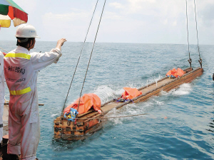 昨天11時30分,隨著打撈人員將“南海I號”古沉船的第36根底托梁穿引完畢,“南海I號”的沉井穿梁工作全部完成,考古打撈工作最大的難關(guān)被攻克。按照打撈計(jì)劃,“南海一號”將于下月中旬浮出水面!