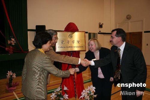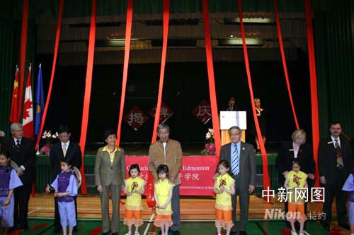 原中國全國人大常委會(huì)副委員長許嘉璐,中國國家漢語國際推廣領(lǐng)導(dǎo)小組辦公室(漢辦)主任、孔子學(xué)院總部總干事許琳等中國要員專程前來參加揭牌儀式。加方出席嘉賓有艾伯塔省省督林佐民(Norman Kwong)和省教育部部長大衛(wèi)•漢考克(David Hancock)以及聯(lián)邦、省、市三級(jí)政府代表等。