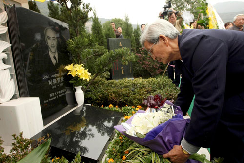 來自北京、上海、杭州等地燕京大學(xué)校友代表參加了十七日的安葬儀式。燕京大學(xué)校友會(huì)北京校友代表國仲元先生把一捧潔白的百合花輕輕地放在墓碑前:“老校長,您安息吧!