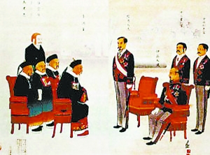雖說如此,但李鴻章是否會離日返國,日方并無絕對的把握。為了安撫李鴻章,睦仁特派專使偕兩名軍醫(yī)總監(jiān)同赴馬關(guān)慰問,皇后也賜予御制的繃帶,并派2名護士前去護理。這招兒果然奏效。3月27日傍晚,李鴻章密電總理衙門稱:
