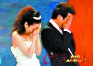 代表場景:千呼萬喚之后,新郎“基仔”終于出場。這個染了發(fā)、梳著雞冠頭的廣東小伙子激動地呼喊:“寶貝!”新娘也大喊:“基仔!”重復(fù)喊過兩遍之后,新郎新娘奔向?qū)Ψ,沒料到用力過猛撞了個滿懷。