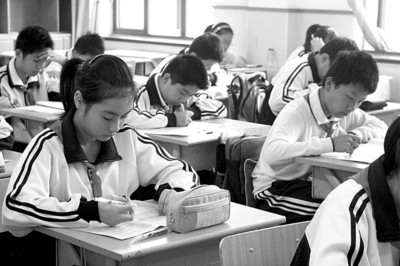 今天上午8:00,靜安區(qū)愛國學(xué)校七(3)班教室內(nèi),正在進(jìn)行期中考試。蔣秘文手中的試卷有些與眾不同,她答的是稍難些的B卷。在七(3)班,像小蔣一樣考B卷的還有4位同學(xué),其余近2/3學(xué)生主動選擇了難度適中的A卷。今年期中考試,該校初中年級推出創(chuàng)新做法,答哪一類卷,由學(xué)生自選,老師加以指導(dǎo)。學(xué)校在語、數(shù)、外三門功課中采取“分層考試”,分別設(shè)計了兩套難易程度不同的A、B卷,學(xué)生可根據(jù)自己的學(xué)習(xí)能力狀況自主選擇不同層面的試卷。