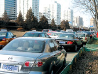 昨天是位于西城區(qū)的中央音樂學院的考級日,考場門前出現(xiàn)了眾人趕考的火爆場面。其中不少孩子都是乘坐家長開的“專車”來考試,浩浩蕩蕩的趕考車隊很快將中央音樂學院內(nèi)部的停車位占滿,而后又排到了學院西門外的二環(huán)輔路上,停放了百米多長。雖有交警疏導,此路段仍然較為擁堵,車輛行進十分緩慢。