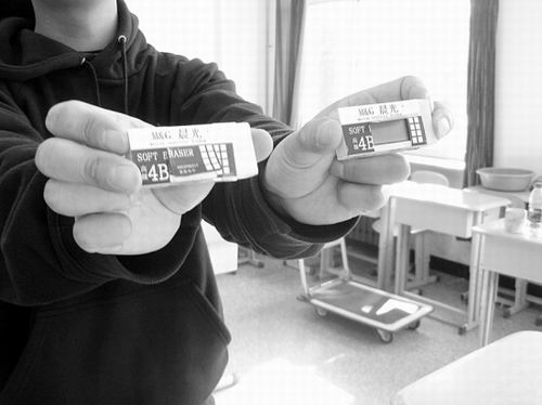 11日上午第一科進行的是基礎知識考試,試題均為客觀選擇題。10點,到了規(guī)定的開考一小時后可以離場時間,陸續(xù)有考生走出考場,但仍有不少考生仍在埋頭認真答卷。但一名女考生卻引起監(jiān)考人員注意。她不看試卷,卻不時擺弄手中的橡皮。橡皮有什么好玩的?監(jiān)考人員走上前去,拿起橡皮端詳。這塊標有“晨光”牌的橡皮十分常見,外觀上看沒什么特別,但其外包裝紙卻有被揭開的痕跡。監(jiān)考人員揭開包裝紙,竟然發(fā)現(xiàn)這是一個類似微型BP機的接收設備,上面正顯示出各試題的答案。