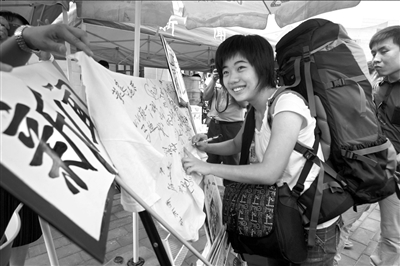 蔣方舟報(bào)到時(shí)簽名。 本報(bào)記者夏永攝