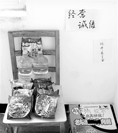 晨報訊(記者陳志鵬 通訊員曲瀅龍)“由于學(xué)業(yè)為重,本攤無人經(jīng)營,如需要商品,請自覺投幣,以我的誠心換取你的誠信!北驹5日起,華中師范大學(xué)武漢傳媒學(xué)院男生宿舍5樓出現(xiàn)一個無人經(jīng)營小攤,該校08級播音主持專業(yè)學(xué)生李立貼出開業(yè)告示,不過,開張3天就遭遇信任危機。