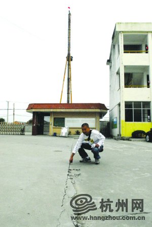 學(xué)校地面開裂,不遠處就是打樁機。 攝影 曉春