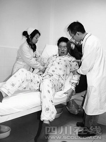 從9月24日起,李福忠再也沒有時間輸液,原本預(yù)定國慶期間到成都做檢查也因洪水而作罷。10月底,李福忠感覺下身的包塊開始隱隱作痛,11月2日,他終于在妻子陪伴下來到華西醫(yī)院做檢查。兩個老專家給他做了初步檢查之后告訴他:情況非常嚴(yán)重,初步懷疑是惡性腫瘤!李福忠住進(jìn)了華西醫(yī)院。