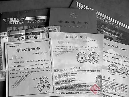 據(jù)了解,和小林類似遭遇的考生還不少,他有幾個同學(xué)也收到了不少奇怪的錄取通知書。