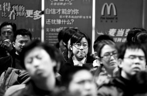 由于麥當(dāng)勞的招聘并沒有專業(yè)限制,記者注意到,在昨日的招聘會上,很多與餐飲、管理完全不相關(guān)專業(yè)的學(xué)生也坐在會場!拔沂强刂评碚撆c科學(xué)專業(yè)的”,一位北京大學(xué)的研究生小雷告訴記者,他找工作不只盯著對口專業(yè)。事實(shí)上,很多招聘單位也不再把應(yīng)聘者的專業(yè)放在最重要位置。