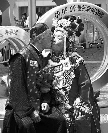 中新網(wǎng)9月9日電 據(jù)香港《文匯報》報道,今天是2009年9月9日,世紀(jì)一遇的“長長久久”日子,已“執(zhí)子之手,與子皆老”的香港人鐘氏夫婦,希望可以繼續(xù)愛到白頭。