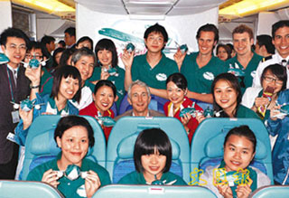 國泰安排的特別航班共接載105名東涌中學(xué)生和10名深水埗區(qū)的中、小學(xué)生,他們大部分都未坐過飛機(jī),因此當(dāng)飛機(jī)正式起飛及降落一刻,全場都興奮得鼓掌歡呼。