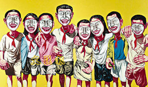 該畫作是曾梵志1996年的作品,當(dāng)時他剛結(jié)婚及搬往北京,畫中人物雖戴著面具,卻流露歡愉情緒,與曾梵志其它面具系列作品表現(xiàn)的憂傷大不相同。拍賣會上成交額名列第二的是岳敏君的《轟轟》,以5409萬港元成交,該畫創(chuàng)作于1993年,是岳敏君代表作之一。