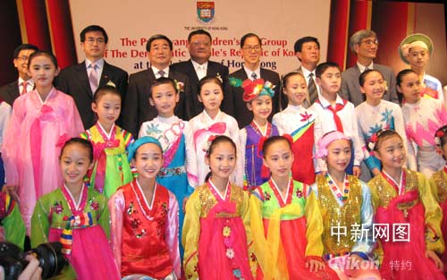 朝鮮民主主義人民共和國平壤少年藝術團今天在香港大學黃麗松堂舉行首場演出。