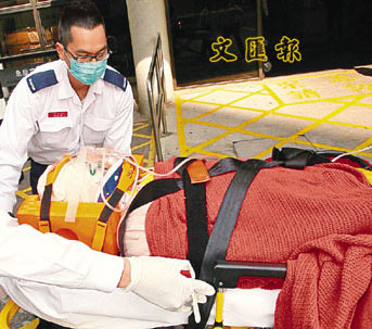 有街坊途經(jīng)該處聽聞巨響,發(fā)現(xiàn)事態(tài)嚴(yán)重,馬上報(bào)警。消防員接報(bào)到場,升起云梯到檐篷上將胡某救下,送院不治。