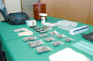 警員隨后帶同疑犯到其位于北區(qū)的寓所調查,在其睡房一個背囊內(nèi)發(fā)現(xiàn)電子秤、膠袋等懷疑毒品包裝工具。警員隨后作仔細搜查,在單位門外化寶盆內(nèi)發(fā)現(xiàn)一個密封的膠盒,內(nèi)里共有9包共重177克的毒品“大麻花”。