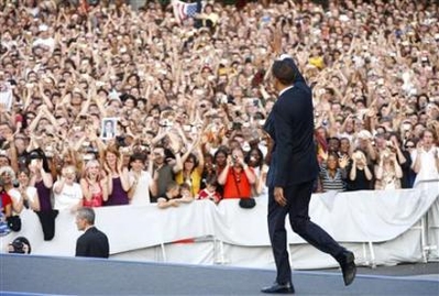 中新網(wǎng)7月25日電 美國(guó)民主黨總統(tǒng)候選人奧巴馬24日到訪柏林,發(fā)表其中東、歐洲之旅的唯一一次演說,掀起這次外訪的高潮。德國(guó)輿論與民眾對(duì)奧巴馬此次訪問非常雀躍。柏林警方形容,奧巴馬到訪令當(dāng)?shù)厝睡偪瘵s“情形有點(diǎn)像邁克-杰克遜等天王巨星光臨。”