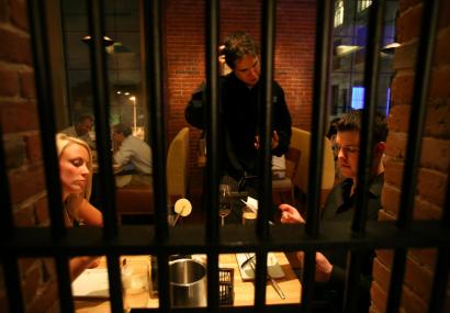 在另一間名叫“牢房”(Clink)的餐廳,食客可以從倉(cāng)門與窗戶的原裝欄柵,向身著標(biāo)有犯人編號(hào)囚衣的男女侍應(yīng),點(diǎn)吃煙熏龍蝦濃湯或柑橘烤大蝦。 而酒店內(nèi)名為“假證明”(Alibi)的酒吧則建于監(jiān)獄內(nèi)昔日的酒鬼囚禁室。