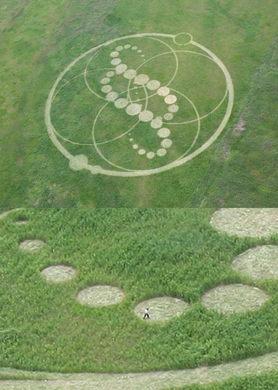 該網(wǎng)友說:“發(fā)現(xiàn)麥田圈的地方是人跡罕至,雜草叢生的野地,從路邊用肉眼幾乎無法識別,爬到梯子上才能稍微看得出凹凸有致來!彼又a(bǔ)充說,直徑長達(dá)200米的圖案交錯有致,讓人聯(lián)想起太陽系,中間有DNA形狀的花紋。