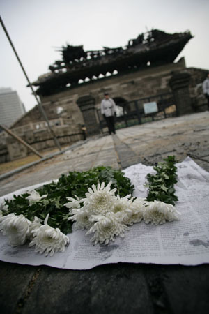 2月10日是韓國春節(jié)休假的最后一天。突如其來的崇禮門失火事件,給原本祥和的節(jié)日氣氛蒙上陰影。此后一周,痛心疾首的韓國民眾將失火現(xiàn)場布置成了哀悼會,“國恥”的說法不絕于耳。