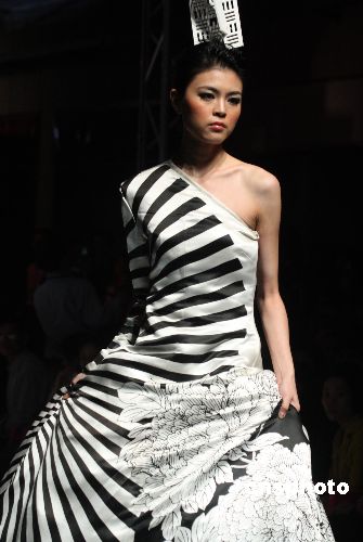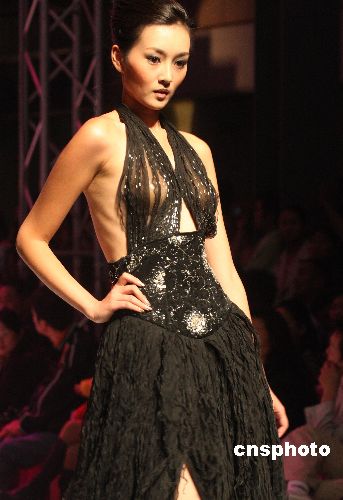 10月26日晚,在湖北武漢舉行的“2007佳海杯中國國際服裝(院校)設(shè)計大獎賽”推出流行趨勢發(fā)布會專場,來自中國香港的設(shè)計師李國華、中國內(nèi)地頂級設(shè)計師吳海燕、杭州的張義超、設(shè)計師顧林等五位設(shè)計師演繹不同風格的“東方神韻”最新力作。作品既保持民族性,又不失時尚性,呈現(xiàn)出多變靈動的服飾風格,通過新絲路模特的演繹,預(yù)告了20007-2008年的時尚走向。圖為模特展示中國服裝設(shè)計師最新流行作品。中新社發(fā) 錢興強 攝