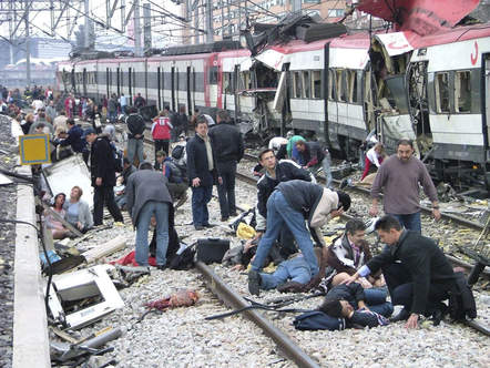2004年3月11日西班牙首都馬德里近郊4列客運(yùn)列車接連發(fā)生炸彈爆炸。共有191人死于那起該國(guó)有史以來(lái)最嚴(yán)重的恐怖襲擊事件,另外還有1856人受傷。