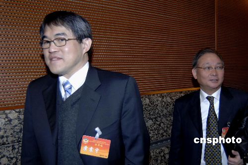 香港已故愛國人士霍英東三子霍震宇(左)作為新增補委員步入會場。