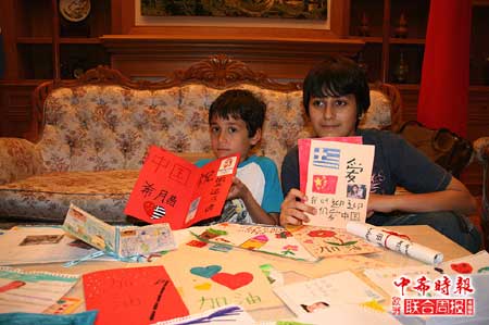 一位名叫科斯塔的小男孩在愛(ài)心卡片上寫(xiě)道:“所有的希臘小朋友都關(guān)心你們,希望我們的關(guān)心和支持能幫助你們很快找回快樂(lè)和歡笑!彪m然中希兩國(guó)語(yǔ)言不同,但是畫(huà)在紙上的圖畫(huà)是中希兩國(guó)小朋友交流的最好語(yǔ)言。