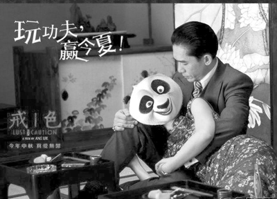 記者昨日在網(wǎng)絡(luò)上看到,熊貓版《色戒》的海報(bào)上,易先生懷里抱著的那個(gè)身材婀娜的王小姐變成了熊貓阿寶,好像梁朝偉本人都忍不住想看個(gè)仔細(xì),美人臉怎么變成了熊貓眼?熊貓版《功夫》中,腦袋上全是卷發(fā)棒的阿寶滿臉自信,“管他是斧頭幫還是鋤頭幫,有神龍大俠在此,誰敢撒野!”至于熊貓版《加勒比海盜》,則是白霧茫茫的海面上,殺氣騰騰的阿寶帶了三大高手和師傅作勢(shì)前來;熊貓版《哈利波特》中,那副可以遮住半張臉的黑框眼鏡還是遮不住阿寶的黑眼圈,瞧它一臉壞笑就知道伏地魔已無處可逃,功夫加魔法啊,該是多么強(qiáng)大!最暈的則是熊貓版《還珠格格》,看阿寶那張恐怖的大嘴,五阿哥這回可遭殃嘍。