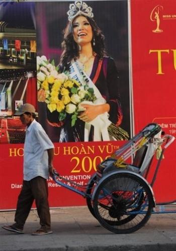 委內(nèi)瑞拉小姐(中)贏得了越南人的歡心。