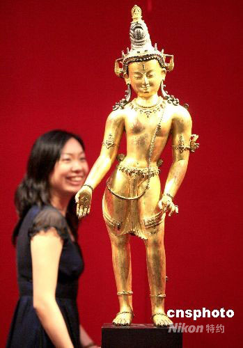 圖為鎏金銅佛像,價值六百萬美金。中新社發(fā) 張勤 攝