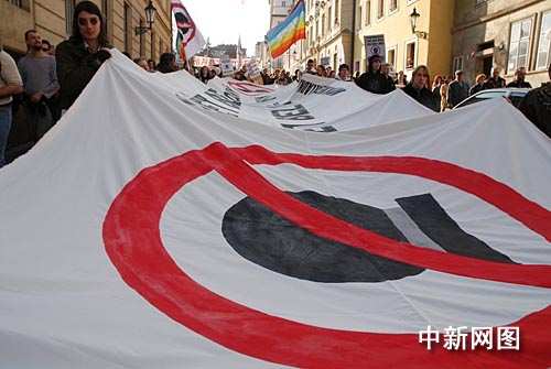 布拉格爆發(fā)反對美國雷達(dá)基地民眾示威游行(組圖)