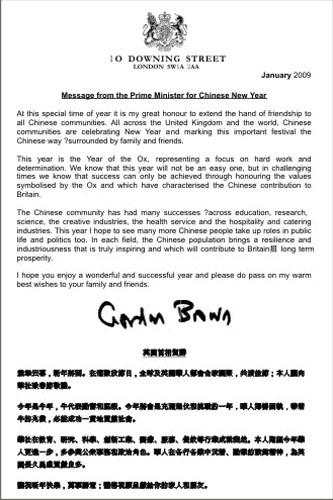 布朗指出,新的一年是中國的牛年,它代表勤奮與堅定。今年將是艱難的一年,在面臨嚴(yán)峻挑戰(zhàn)的時刻,要學(xué)習(xí)牛的精神,才能締造成功。這點從華人對英國所做的貢獻(xiàn),己獲得印證。