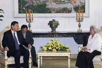 3月19日上午,被廢黜的柬埔寨國家元首西哈努克抵京時,周恩來總理、葉劍英、李先念等國家領(lǐng)導(dǎo)人和友好國家的46位駐華大使到機場迎接。當客人走下飛機,周總理迎上前去緊緊握著西哈努克的手說:我們已經(jīng)知道柬埔寨國內(nèi)發(fā)生政變的情況,請您放心,您永遠是柬埔寨國家元首,我們永遠承認您。親王在機場受到來訪的國家元首的最高禮遇。
