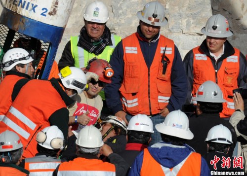 智利33名被困礦工陸續(xù)升井 “領(lǐng)導”殿后(圖)