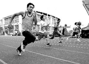 5月8日,蘆山中學高二體育特長生在進行變速跑訓練。蘆山人災(zāi)后讓夢再起飛 。新華社發(fā)