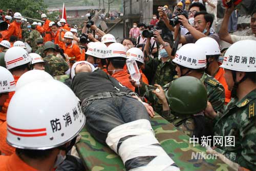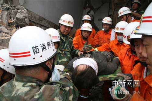 中新社鄭州五月十八日電(記者 朱曉娟 王春榮 申治民)五月十七日晚十八時三十分,地震重災區(qū)四川什邡市鎣華鎮(zhèn)救援一線傳來好消息:鄭州消防支隊所在的河南總隊抗震救災突擊隊第一梯隊成功營救一名被廢墟埋壓一百二十四小時的婦女。這是突擊隊繼五月十六日成功營救被困一百零四小時男子后的又一次救援奇跡。