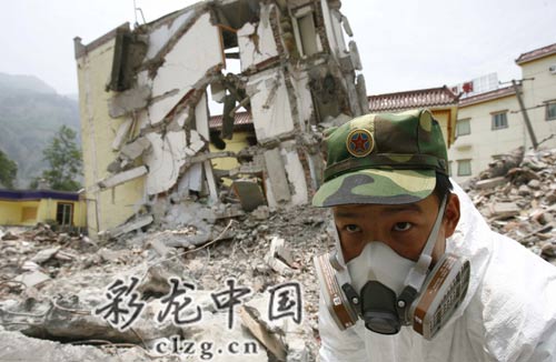 一隊(duì)隊(duì)身著防化服的救援人員在街頭四處消毒撒藥;一聲驚天動(dòng)地的巨響震撼山谷……26日,汶川大地震震中映秀鎮(zhèn),平靜而繁忙。平靜是因?yàn)榇蟛糠志用褚央y覓蹤影,往日的繁華街道已成廢墟,繁忙是因?yàn)閬?lái)自全國(guó)的部隊(duì)正在緊張地清理廢墟、噴灑疾控防疫藥劑。雖然25日青川發(fā)生的6.4級(jí)余震波及到此,但對(duì)于留在帳篷里的居民來(lái)說(shuō),這已不能讓他們驚慌失措。
