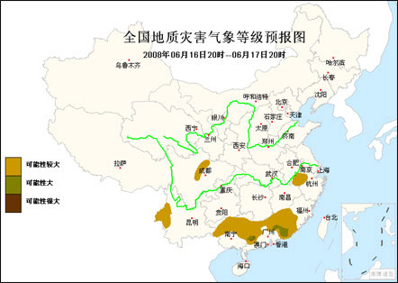 預(yù)計(jì),16日晚上到17日白天,川西高原東北部、云南西部、安徽南部、廣西中北部、江西南部、福建西南部以及廣東東部和西北部的部分地區(qū)發(fā)生地質(zhì)災(zāi)害的可能性較大。其中,廣西東部和廣東東部的局部地區(qū)發(fā)生滑坡、泥石流等地質(zhì)災(zāi)害的可能性大,需加強(qiáng)防范。