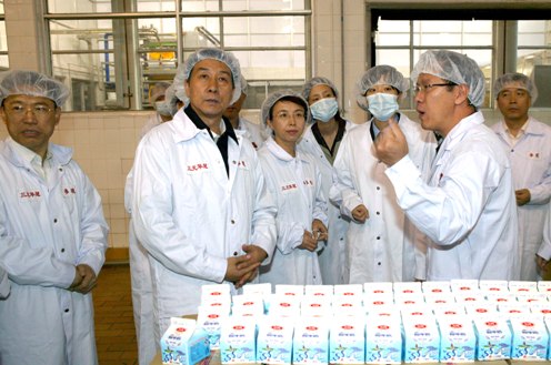 王勇一行首先來到位于北京密云縣工業(yè)開發(fā)區(qū)的內(nèi)蒙古伊利實業(yè)集團股份有限公司北京乳品廠,察看企業(yè)原料奶收購、企業(yè)實驗室、生產(chǎn)下線環(huán)節(jié)、企業(yè)成品庫等環(huán)節(jié)。在該公司生產(chǎn)車間,王勇一邊查看生產(chǎn)線,一邊向公司負(fù)責(zé)人詢問產(chǎn)品的原料供應(yīng)、質(zhì)量檢測項目和工藝流程等情況。當(dāng)了解到每批產(chǎn)品都要經(jīng)過企業(yè)自檢、質(zhì)檢部門的抽檢和國家食品質(zhì)量安全監(jiān)督檢驗中心的檢驗合格后才出廠銷售,王勇露出了滿意的笑容。他向企業(yè)負(fù)責(zé)人叮囑,產(chǎn)品質(zhì)量是生產(chǎn)、制造出來的,而不是檢驗出來的,企業(yè)是產(chǎn)品質(zhì)量安全的責(zé)任主體,一定要加強責(zé)任意識和誠信意識,加強質(zhì)量監(jiān)管和嚴(yán)格自律, 在生產(chǎn)加工各個環(huán)節(jié)都要落實安全措施,一環(huán)扣一環(huán),不能有一絲一毫的疏漏。公司負(fù)責(zé)人表示,伊利公司將嚴(yán)格按照相關(guān)的標(biāo)準(zhǔn)要求,生產(chǎn)出更多更好的產(chǎn)品。公司已采取了“三清理”的措施,即全面清理市場上的產(chǎn)品、全面清理庫存的產(chǎn)品、全面清理原輔材料,對不合格品堅決予以銷毀,以確保市場上銷售的產(chǎn)品都是合格的。
