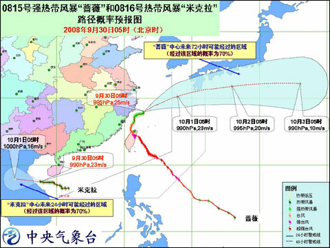 30日“薔薇”與“米克拉”路徑概率預(yù)報(bào)