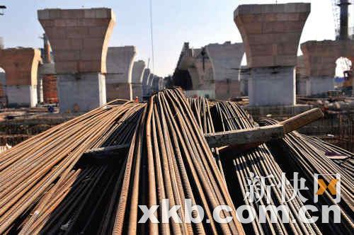 巨大的工地上塵土飛揚,豎立著數(shù)百座三層樓高、像高架橋一樣的水泥墩,有些上面還有有鋼制的柱子。每10秒就會有一輛工程車經(jīng)過。從湖南衡陽來的尹師傅說,眼前這種情況是最近三個月才出現(xiàn)的,工地之前還只是一個大坑。