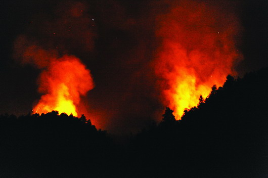 昨日凌晨1時(shí),記者連夜趕到三口鄉(xiāng)華湘村時(shí),遠(yuǎn)遠(yuǎn)就看見(jiàn)山上火光沖天。