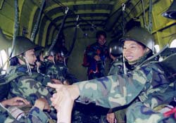這支女子跳傘隊自1991年7月組建至今,隊員們跳過了裝備到空降兵部隊的各種傘型、各種機型,經(jīng)歷了南疆海島、水網(wǎng)稻田、戈壁沙漠、鄂北原始森林等各種復雜地形的空降演習和試訓任務,成為空降兵部隊能跳任何機型、傘型,敢跳高、新、險科目的“專業(yè)”傘兵。她們過硬的軍事技能,無不來自于她們一次次搏擊風浪、一次次趟過空降領域“沼澤地”的不平凡的經(jīng)歷。