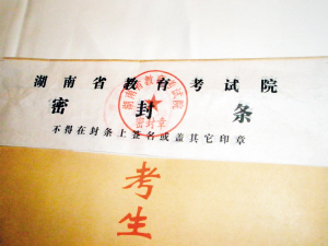 昨天,記者還從羅彩霞處得到了她2004年檔案袋的一組照片。檔案袋正面上方有湖南省教育考試院的密封條和考試院的印章,值得注意的是,密封條的下方還有一層相同的密封條,說明此檔案袋曾被人拆閱過。檔案背面貼有2004年羅彩霞的高考志愿表,經(jīng)羅彩霞證實(shí),背面的簽名是她本人的。