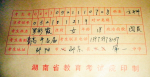 昨天,當(dāng)?shù)啬趁襟w向本報(bào)記者透露,現(xiàn)任邵東縣招考辦主任申曉云曾親口承認(rèn),羅彩霞是邵東唯一有兩份檔案的學(xué)生。