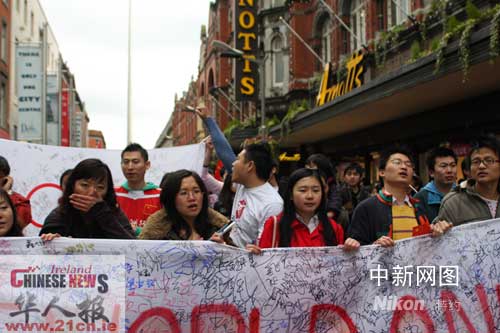 中新網(wǎng)4月14日電 據(jù)愛爾蘭《華人報(bào)》報(bào)道,當(dāng)?shù)貢r(shí)間4月12日,約兩千名愛爾蘭華僑華人在首都都柏林舉行了“反對藏獨(dú) 支持奧運(yùn)”游行。