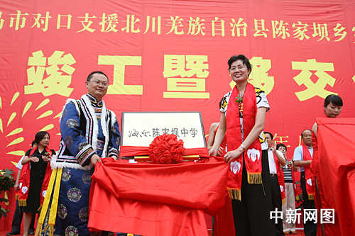 中新網(wǎng)8月26日電 自5.12汶川地震后,青島市對口援建北川曲山鎮(zhèn)和陳家壩鄉(xiāng),海爾作為青島的重要企業(yè),率先出資1000萬援建海爾陳家壩中學。經(jīng)過近10個月的建設,海爾陳家壩中學昨日正式落成使用。在學校落成儀式上,海爾承諾,海爾集團將持續(xù)關注災區(qū),關注北川,關注陳家壩中學,要和當?shù)卣黄,將海爾陳家壩中學建設成為一所教書育人先進模范學校。
